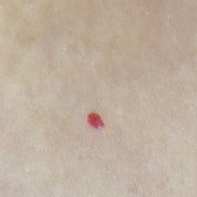 Cherry Angiomas- known more commonly as Blood Spots / Campbell de Morgan spots. Are red ‘dome’ shaped bumps that come in different sizes. Cherry Angiomas can be found anywhere on the body but most commonly on your trunk. They can be related to ageing, sun exposure, genetics, hormones and some medications.