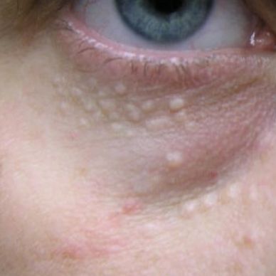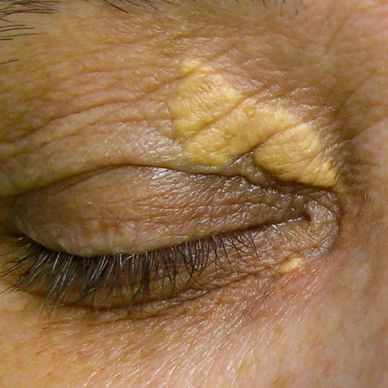 The most common type are Xanthelasmas and they appear on the upper inner eyelid and under eyes. With Xanthomas appearing on the arms/ legs and trunk. They can sometimes be related to disorders such as high cholesterol, diabetes and thyroid problems however this is isnt always the case.